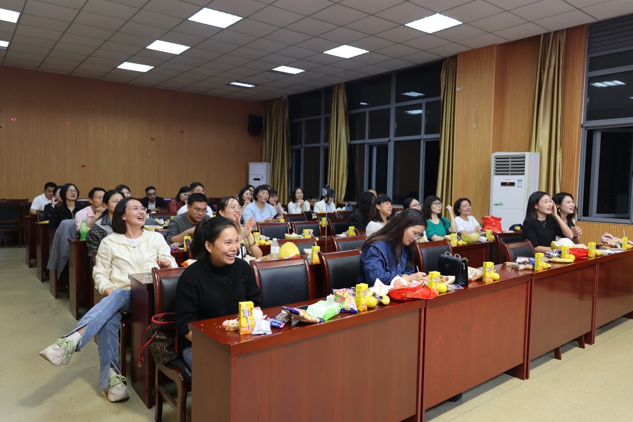 10月12日晚,“国培计划(2024)”平舆初中语文县级骨干教师研修班文娱晚会在土木楼605会议室顺利举行。晚会由文娱委员周慧敏和学习委员孟东佳主持,培训学员及员工助理欢聚一堂,共同参与并观看此次晚会。