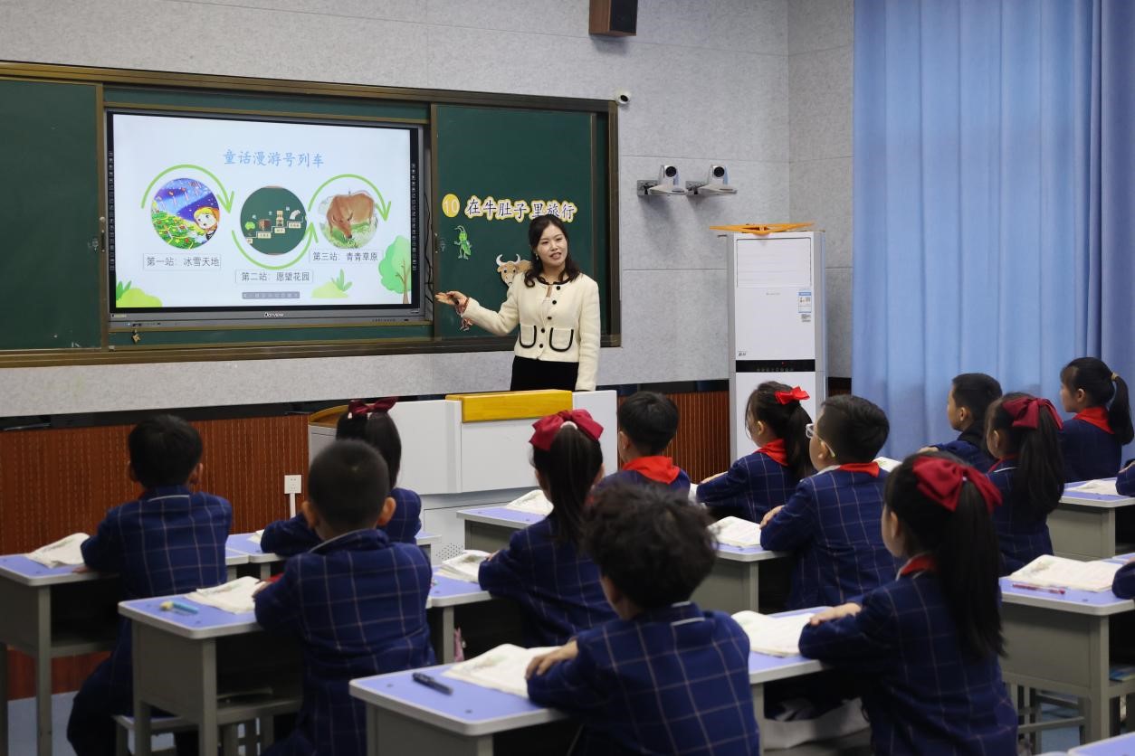 随后,各位老师进入班级观摩王纪华老师的语文课《在牛肚子里旅行》,切身感受羊山外国语小学的课堂氛围和授课模式。课堂上,员工们认真听课,积极回答问题,勇于发表见解,与老师形成了良好的互动,这种活跃的课堂氛围和积极的师生互动,赢得了培训学员们的一致好评和高度赞赏。
