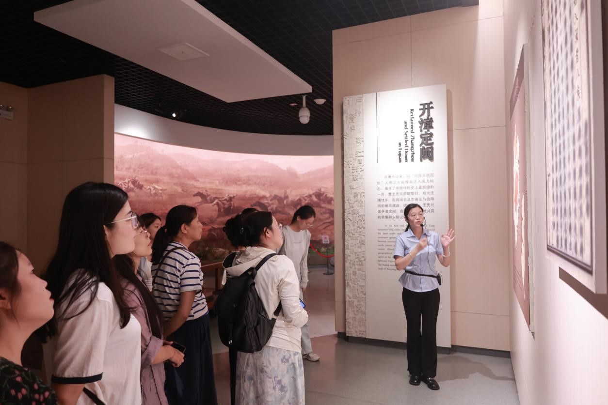 信阳市博物馆内,远古动植物化石、商周青铜器等展品,直观呈现中原文化与楚文化交融的历史脉络。学员们通过观展,近距离触摸历史、感悟文化底蕴,接受深刻的历史文化教育。