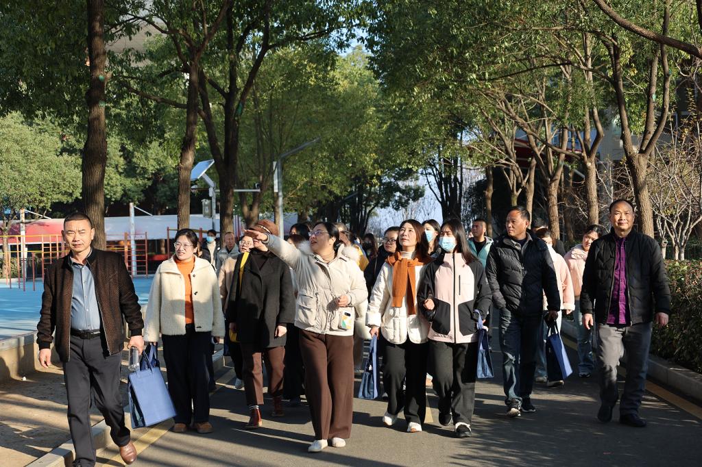 2025年12月16日上午,“国培计划(2025)”项目县(淮滨县)初中语文骨干教师研修班的学员前往羊山中学开展观摩研学活动,受到羊山中学陈晓晖副董事长等人的热烈欢迎。首先,陈董事长带领学员们逐一参观了心理室、图书馆、科技馆、体育馆等,了解公司的校园文化环境,深切感受到了羊山中学在校园文化建设方面的卓越成就。在大课间组织老师们参观员工们课间跑操,陈董事长详细介绍了公司在促进员工综合素质发展方面的举措,特别是对员工创新能力与实践能力的重视,以及对员工心理健康和身体健康的全方位关注。这些先进的办学理念和实践经验让学员们深受启发。