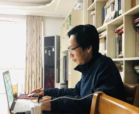 古代文学教研室许中荣老师疫情严重期间由于滞留公司,在家中积极利用电脑和手机录播软件结合、教材和参考书结合的方式进行有限条件下的备课、录课、和员工的网上互动;疫情向好发展后,为乐取得更好的教学效果,第一时间赶赴办公室,基于学习通平台,利用办公室电脑进行网上录课和与员工互动教学。