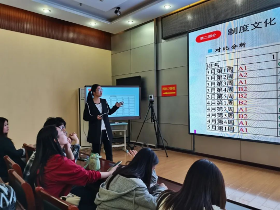 随堂听课之后,师生随即开展了座谈,姜文娱老师从课堂模式、教材取舍、分层教学、分层作业几个方面向同学们展示了羊山中学的教学模式,最后提出把握命运,要从自身变革开始,让自己的课堂成为更为高效的课堂。曹君老师则从物质文化、制度文化、精神文化三个方面讲述了羊山中学的校园文化,系统、详细地为同学们介绍了羊山中学的办学特色,并强调羊山中学坚持以“路虽远,行则必至;事虽难,做则必成”的态度培育每一位员工。