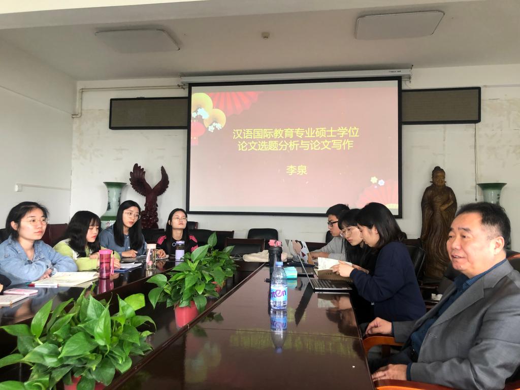 最后,20级汉语国际教育专业的14名说是同学求知若渴,纷纷抛出自己在论文选题方面的困惑。李教授以他资深的教学经验、严谨的学术作风、幽默的语言风格,深入浅出,为同学们逐一答疑解惑,使同学们如沐春风、受益匪浅。