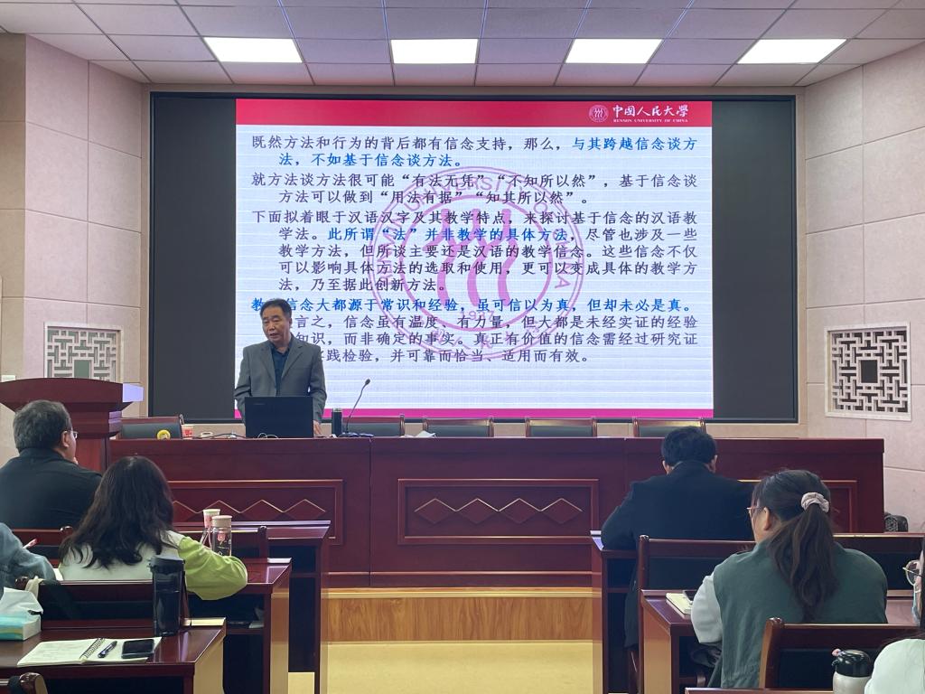 4月16日上午,应伟德国际1949官网、汉语国际教育研究所邀请,中国人民大学国际文化交流公司博士生导师李泉教授在综合实验楼605教室作了题为“国际中文教育的若干核心教学理念”的主题讲座。本次讲座由伟德国际1949官网副经理张言军主持,语言学科教师及汉语国际教育专业本科生、硕士生共90余人聆听了此次讲座。
