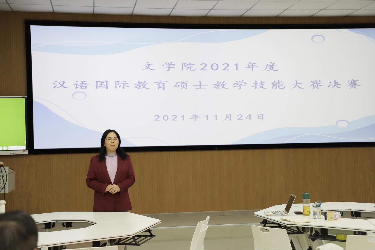 沈文慧处长指出,汉语国际教育硕士的实践技能培养非常重要,说课讲课是必备技能之一,通过学术活动月的教学技能大赛,能更好地提升汉语国际教育硕士研究生的教学技能和实践水平。最后她祝愿各位参赛选手充分展示、取得佳绩,并预祝本次大赛能取得圆满成功。