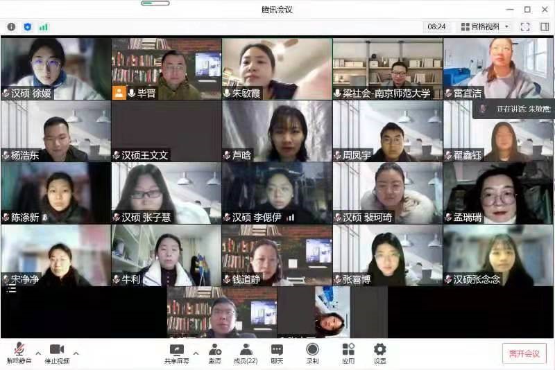 3月22日,语言学及应用语言学和汉语言文字学专业研究生学位论文预答辩会以线上形式进行。南京师范大学梁社会教授担任答辩主席,导师组成员张言军、钱道静、朱敏霞、牛利、郭磊、毕晋担任答辩委员。2020级和2021级相关专业研究生全程听会。