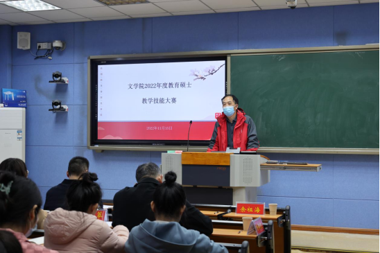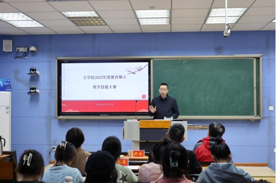 杨传凯老师为本次大赛致辞,他鼓励学科教学专业的研究生积极参加与教学技能相关的活动,反复锤炼自己的专业能力,不断提高知识素养。杨老师指出,教学技能大赛是展示员工风采的的舞台,也是提升员工教学水平的比赛,更是相互学习、相互交流的平台,希望所有同学都能在比赛中大放异彩。最后,杨老师祝愿所有参赛选手都能赛出成绩,预祝本次教学技能大赛圆满成功。