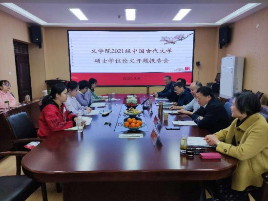 3月8日,2021级古代文学专业硕士学位论文开题如期举行。本次开题特别邀请了上海大学特聘教授曹辛华老师主持,该专业导师组成员姚圣良、金荣权、江中云、张本一、刘小兵老师及4名古代文学专业硕士研究生参加了开题报告会。