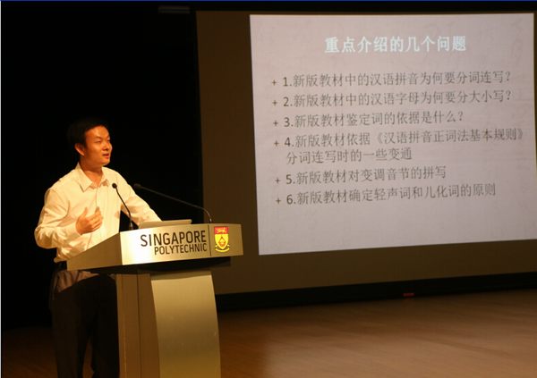 9月16日,应新加坡教育部课程规划与发展司邀请,公司特聘教授刘振平博士为新加坡小学华文部主任会议做了题为“新加坡新版小学华文教材中的汉语拼音拼写”的大会报告,全面阐释了新加坡新版统编教材(2015)在汉语拼音拼写方面的改革和依据,并对新加坡汉语拼音教学提出了指导性意见。来自新加坡全国200多所小学的华文部主任、教师代表聆听了大会报告,并与刘振平博士做了深入的交流。