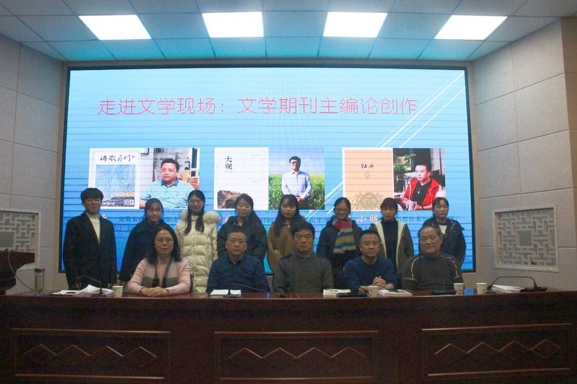 三位老师就《诗歌月刊》《大观》《牡丹》分别作出了简要介绍。接着三位主编就文学问题与与会同学展开了交流与讨论。针对文学与其他艺术的关系,李云主编指出:其它艺术的产生往往需要坚实的文学作基础,这就好比一部好的戏剧作品需要一本好的剧本,一个编剧或者音乐作词家首先要有扎实的写作能力,才能写出好的艺术作品。就文学创作如何摆脱书生气提高深度的问题,张晓林主编强调:作家在其创作的不同阶段,作品会受其生活阅历的影响而呈现出不同的特征。正处于大学阶段的我们,不必纠结于自己作品的风格问题,更为重要的是要认真研读经典,打好文学功底。就文学创作者的初心问题,王小朋主编强调:文学创作是一个冷板凳,投身文学创作需要一种热爱写作的情怀,文学创作更多的是给人带来精神上的享受和灵魂上的触动。发言结束后,各位期刊主编还与同学们进行面对面交流,他们主要就小说写作的选材以及诗歌意象的选取跟大家作了充分的交流。