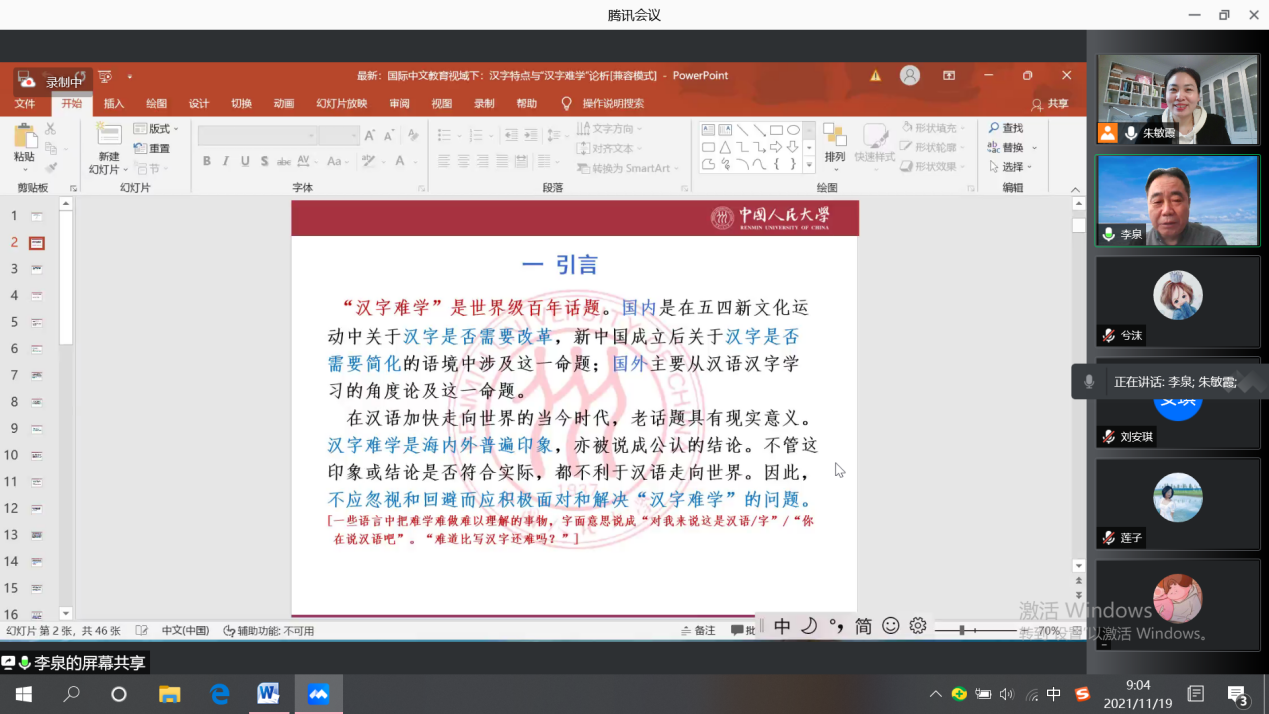 此次线上报告会内容丰富,论证风趣,打破了员工对“汉语难学”的固有印象,让与会师生对汉字和汉字国际教学有了更加深入的理解,激励了伟德国际1949官网员工打开思路,从多方面思考问题。