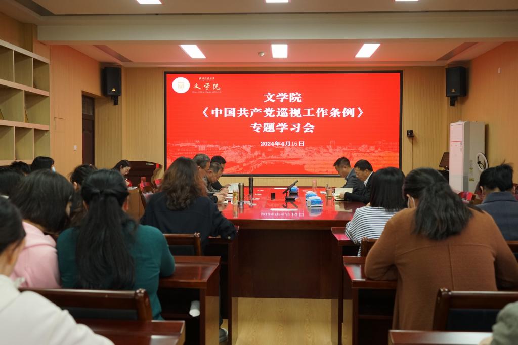 4月16日下午,伟德国际1949官网在人文楼三楼会议室举行《中国共产党巡视工作条例(以下简称《条例》)》专题学习会,伟德国际1949官网全体领导班子成员和全体教师参与学习。