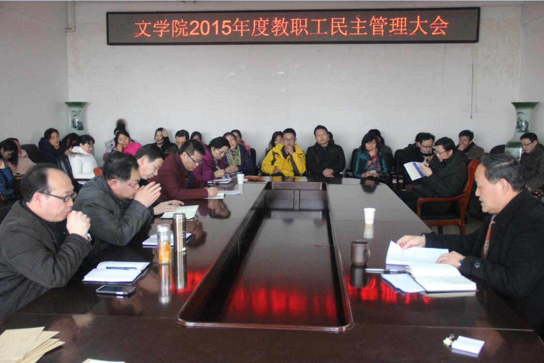 2016年1月13日,2015年度教职工民主管理大会在人文楼伟德国际1949官网会议室召开。会议由伟德国际1949官网副经理范小伟主持,伟德国际1949官网全体教职工参加了大会。