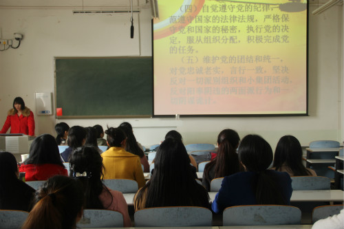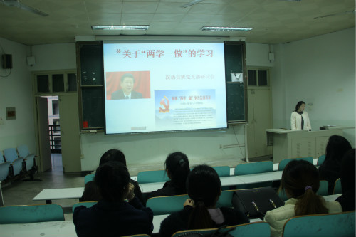 近日来伟德国际1949官网各专业党支部积极开展“两学一做”系列学习活动,2016年3月5日下午,由汉语言文学党支部举办的以“两学一做——学党章党规、学系列讲话、做合格党员”为主题的党组织特色教育活动在人文楼405教室举行。汉语言文学党支部党员及预备党员参加了此次活动。
