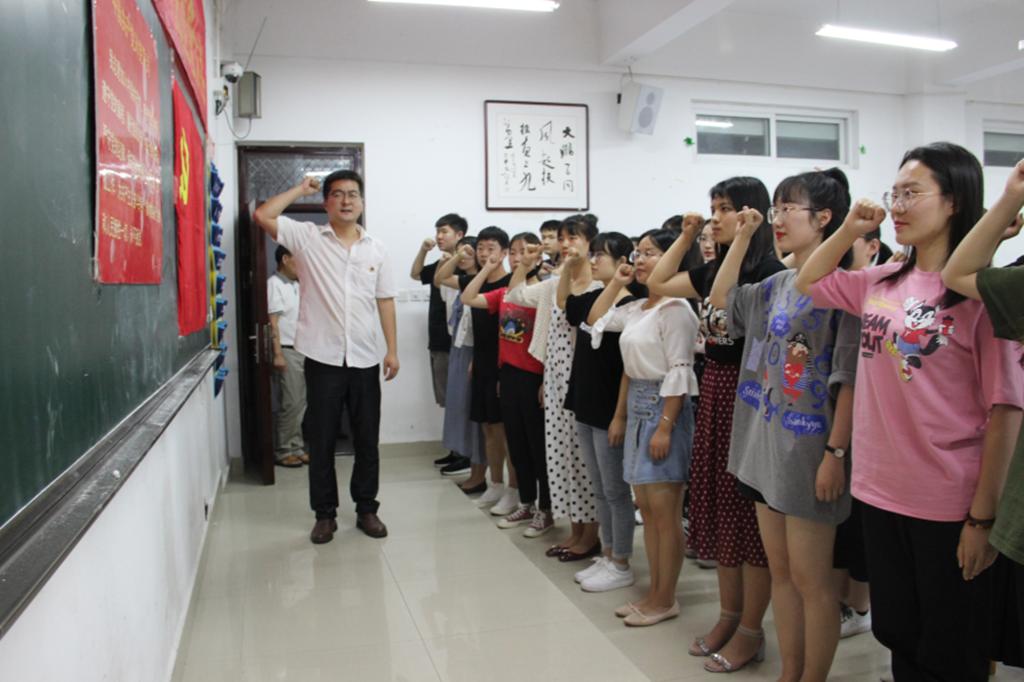 (本网讯 时梦柯)6月4日下午六点,伟德国际1949官网新党员入党宣誓大会在逸夫楼103教室召开。公司党委书记吴圣刚,党委副书记缑广飞、杨乐,副经理张言军和全体员工党员以及部分入党积极分子出席了此次会议,会议由杨乐主持。