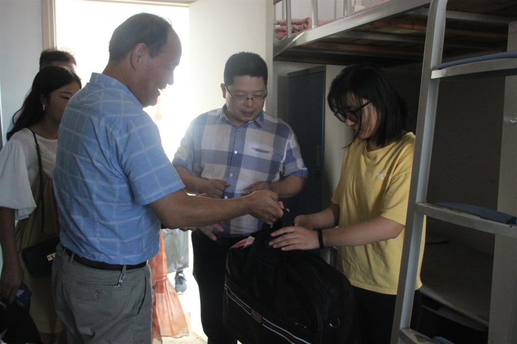 (本网讯王凯贺 李慧)9月8号下午,公司党委书记吴圣刚、副书记杨乐和19级新生辅导员郭子悦老师一行先后走访2019级4号楼男生宿舍和16号楼女生宿舍,看望慰问新同学。