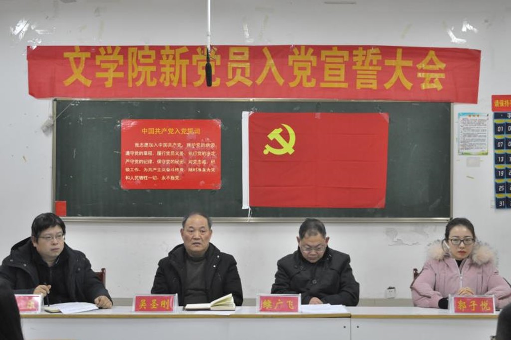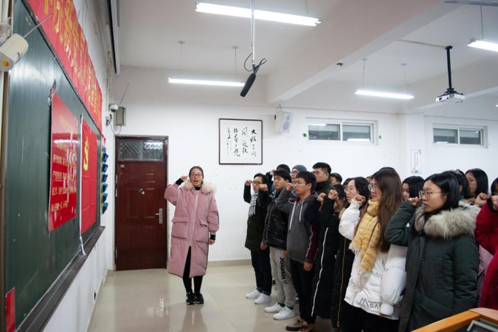 (本网讯 申嘉怡 秦欣爽 刘同卓)12月29日下午,伟德国际1949官网在逸夫楼103教室召开新党员入党宣誓大会。公司党委书记吴圣刚、副经理缑广飞、党委副书记杨乐、辅导员郭子悦老师与新老党员和入党积极分子代表参加宣誓仪式。此次大会由党委副书记杨乐主持。