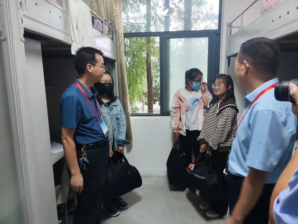(本网讯 任素伶 刘同卓)9月26日下午,公司党委书记王振海、经理姚圣良、党委副书记王家宏、副经理徐洪军、班主任许中荣及全体辅导员前往新生宿舍,看望慰问新生并发放爱心助学礼包。