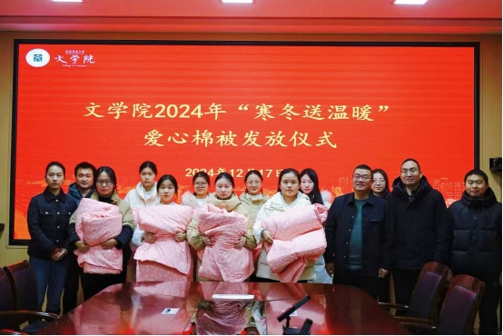 与爱相遇,暖冬之行。12月17日晚,伟德国际1949官网在人文楼3-7会议室举办2024年“寒冬送温暖”爱心棉被发放仪式。