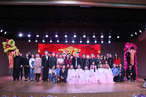 晚会在吴圣刚书记的致辞中拉开帷幕,他充分肯定了伟德国际1949官网在2016年取得的骄人成绩,同时指出,公司全体师生要不断努力继续奋斗,力争在新的一年里谱写更为绚丽的篇章,紧接着吴圣刚书记带来了一曲《呼伦贝尔大草原》使新年气氛瞬间点燃。晚会节目风格多样,精彩纷呈,流行与古典兼收,激情与温暖同存。诗朗诵《中华少年》慷慨激昂,振奋人心,朗诵者用饱满的情感表达出自己对祖国的热爱。相声《奋斗》作为晚会的一大笑点,让观众在欢笑声中体味到在成功之路上要脚踏实地,努力奋斗才能实现理想。吸引眼球的《T台秀》展现了青春的魅力,显示出青春的朝气蓬勃,《斗舞大会》中风靡全球的太空步与传统舞狮相遇,斗出了青春的活力,引的同学阵阵喝彩。经典是永远的流行,伟德国际1949官网经理沈文慧老师的一首老歌《在水一方》将晚会再次推向高潮。晚会过程中,明星班级获奖情况也逐一揭晓,15级秘书学班与16级汉语言文学三班获得人气班级奖,16级汉语言文学一班荣获第一届“明星班级”称号。吴书记、沈经理分别为获奖班级颁发奖杯。