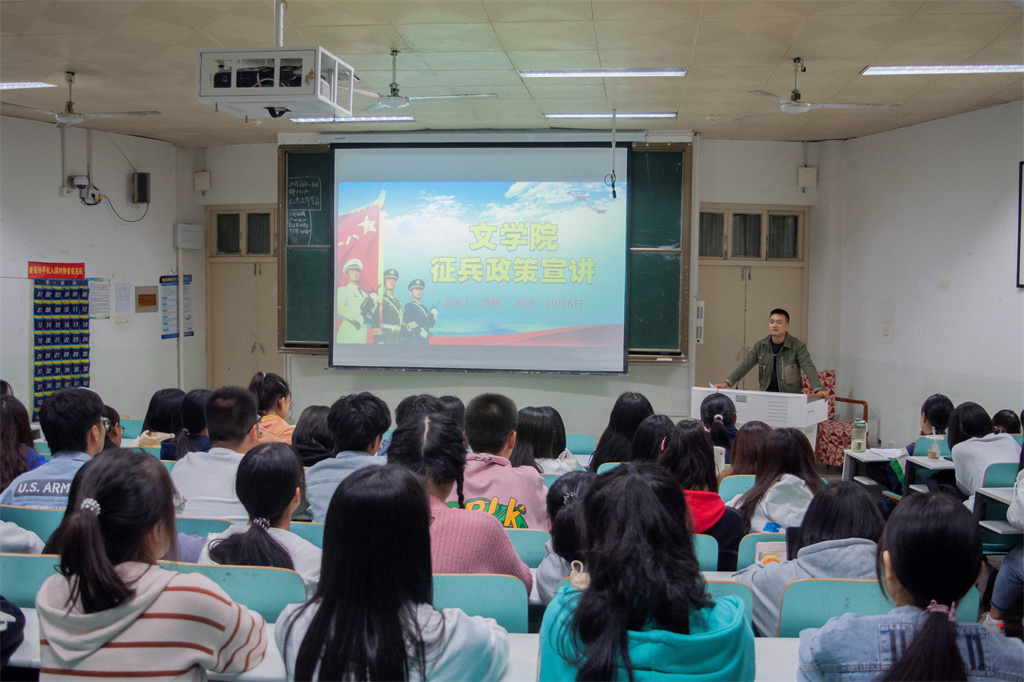 为充分调动公司学子参军入伍的积极性,推进国防和军队现代化建设,10月6日晚在人文楼409教室召开伟德国际1949官网征兵政策宣讲会,会议由辅导员陈辉老师主持,21级班长、团支书及各寝室代表参会。