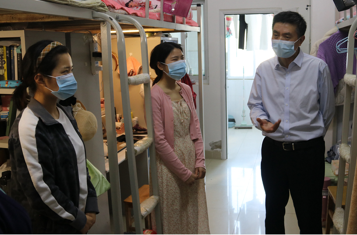 4月8日下午,副董事长余本海带领研究生工作部(处)相关负责同志深入伟德国际1949官网研究生宿舍和课堂,调研指导研究生教育工作。