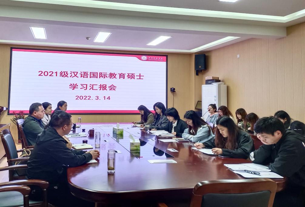 3月14日上午,2021级汉语国际教育硕士学习汇报会在人文楼3楼会议室顺利举行。汇报会由伟德国际1949官网副经理张言军主持,全体汉硕员工参加汇报会,导师组成员钱道静、朱敏霞、牛利、毕晋参会并指导。