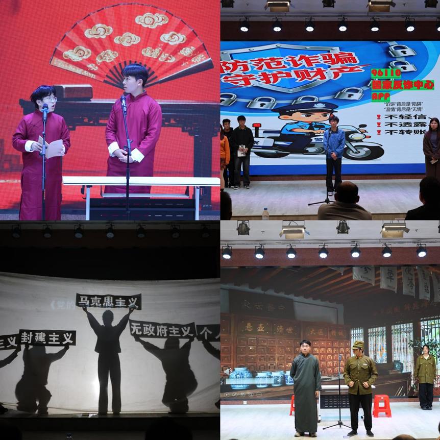 历经初赛的层层筛选与激烈比拼,来自全校不同公司的10个优秀节目突出重围,跻身决赛舞台。当晚,各参赛队伍依次登场,以多样形式演绎青春故事,用精湛技艺传递文化力量,为现场观众呈现了一场视听盛宴。开篇节目《云宫迅音》以经典旋律为基底,巧妙融合灵动光影与韵律编排,登台便引爆全场氛围;传统曲艺节目《三家店》则尽显国粹底蕴,表演者字正腔圆的唱腔、韵味十足的演绎,赢得台下阵阵掌声与喝彩。红色主题作品《党的百年述职报告》创新采用“述职”视角串联百年党史,演员们深情饱满的演绎将峥嵘岁月娓娓道来,引发全场强烈情感共鸣;温情小品《爷爷》以祖孙亲情为切入点,将“说学逗唱”的曲艺技巧融入生活化剧情,细腻情感直击人心;心理情景剧《追光者》聚焦青年逐梦历程,通过真实的情节刻画展现追梦路上的坚持与热忱,传递出昂扬向上的青春正能量;活力舞蹈《Go Girls》以整齐划一的动作、自信洒脱的风采,将现场气氛推向新高潮;独唱节目《Blue》以细腻婉转的嗓音,唱出当代青年成长路上的迷茫与释然,悠扬旋律直抵人心;红色短剧《药方》以舞台艺术重现烽火岁月,通过扣人心弦的剧情,勾勒出抗日征程中仁人志士的家国情怀与人性光辉;古风表演《寄明月》身着典雅服饰,以柔美舞姿与婉转唱腔尽显古典韵味;最后登场的反诈小品《我再也不会被骗了》凭借幽默诙谐的剧情、接地气的台词普及反诈知识,实现寓教于乐,收获满堂彩。