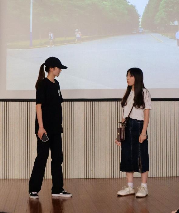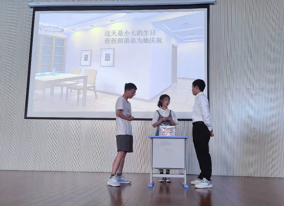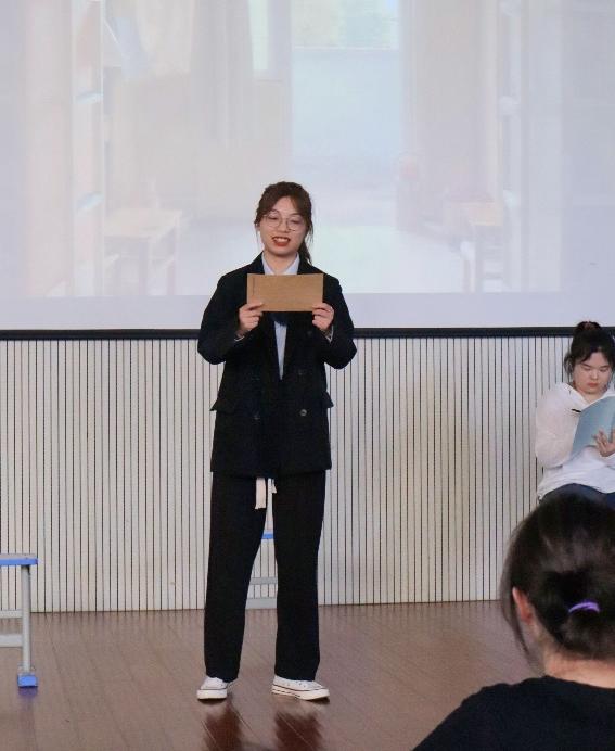 随后,由汉语言文学四班同学带来的《巧克力的执念》,以多子女家庭的视角出发,女儿初中生日时一块本属于自己的巧克力被弟弟抢走,而最终她也得到了本该属于自己的巧克力,表现出女儿的慢慢理解和父亲沉默的爱。由汉语国际教育班同学表演的《两个我》,揭示出校园暴力对青少年心理的极端影响,在故事的最后,主人公小希也在朋友的包容与理解下,逐渐好转。最后,创意写作班同学带来了《疫情封校下的日常》,让我们看到了在疫情的大背景下,被封在校园的员工起初懒散,但在逐渐找到了适合自己的节奏后,生活变得积极向上,也更加有意义。