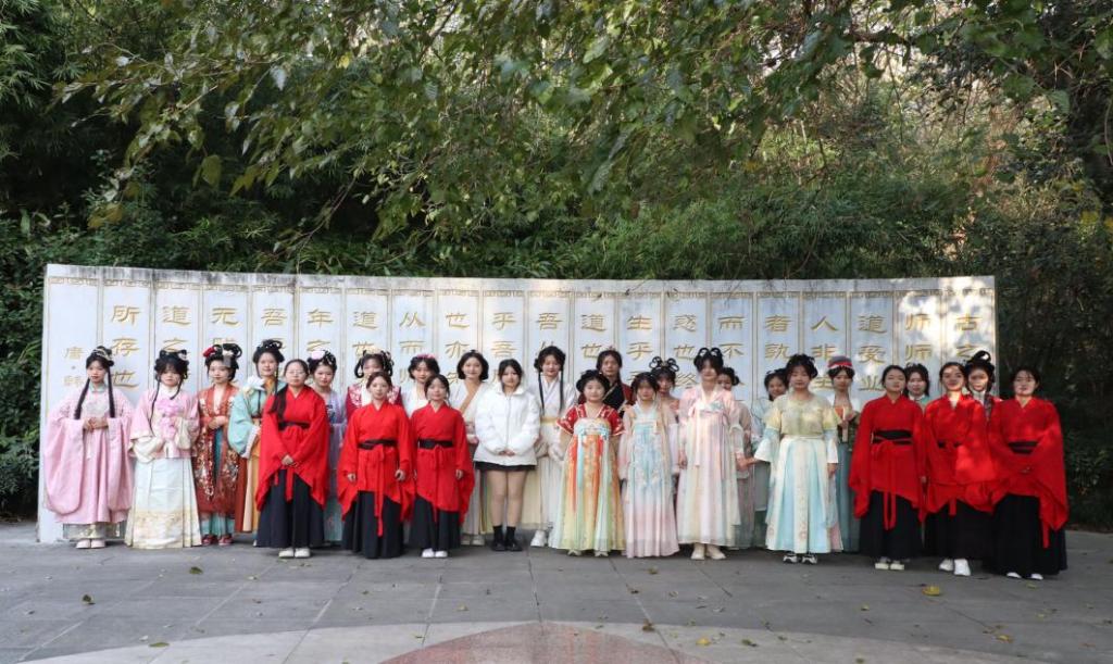 为了传播汉服文化,增强民族文化自信心,11月26日,伟德国际1949官网国学经典研教社顺利于师说碑举办了汉服展活动,并面向全校师生开展。