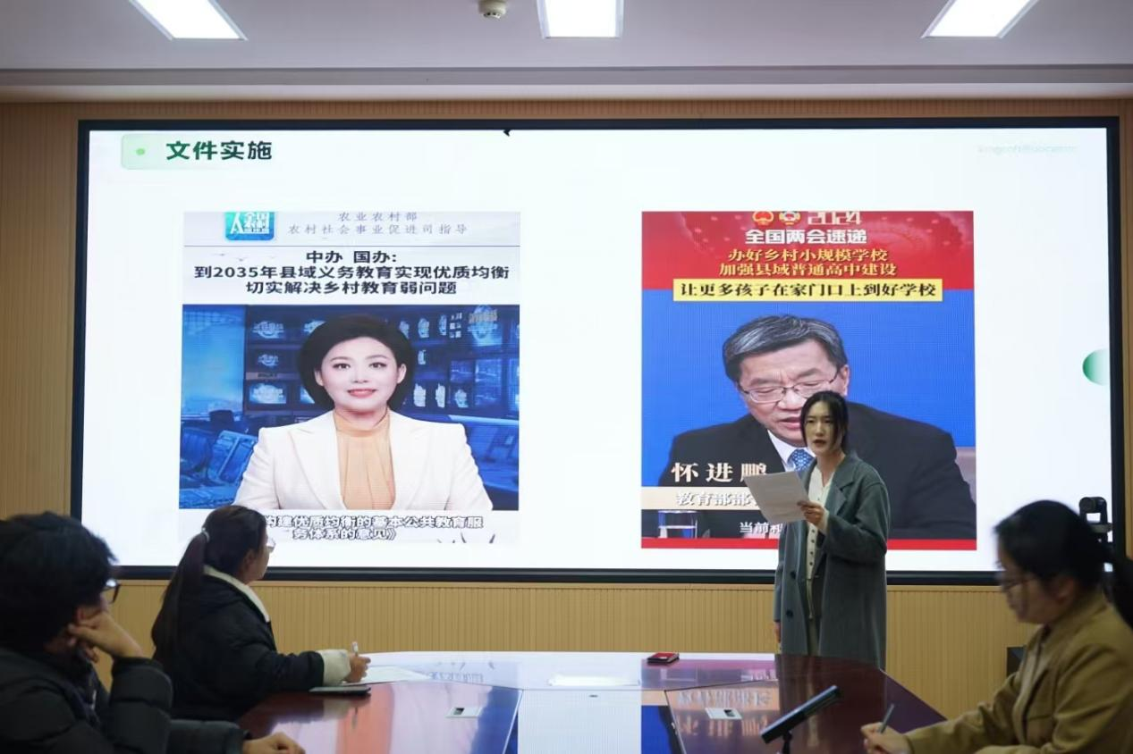 比赛现场气氛热烈,参赛选手讲述了一个个扎根基层教育的先进人物,回顾了一个个感人动人的教育故事。邓岚戈讲述了张玉滚老师以长窄的扁担挑起山乡的未来,以宽平的板凳稳住了孩子们的心;王俊琪以张桂梅老师为榜样,讲述了张桂梅老师与员工相处的细枝末节,用一件件小事展现张桂梅老师的教育情怀。“等枝桠,成繁花”,李思颖以此为题,讲述了乡村教师的不易。乡村教育是大山褶皱里的芒,乡村教师是孩子们思想沟壑里的光;高雅雅坚信“教育就是用一棵树去摇动另一棵树”,乡村教师扎根乡村,正是有了他们的努力才让贫瘠的山区开出了希望的鲜花。