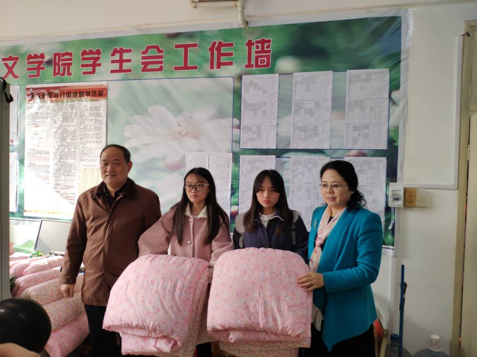 11月28日上午,公司2018年“寒冬送温暖”棉被发放仪式在人文楼3-1员工会办公室举行。公司党委书记吴圣刚、经理沈文慧、党委副书记杨乐出席活动,为家庭经济困难员工发放被褥。