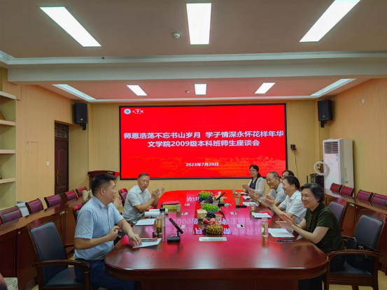 “丽日芳年,人在此中长醉。春秋桃桂,花开陌上许当归。”7月29日,2009级本科班师生座谈会在人文楼3-7会议室召开。来自安阳、开封、新乡、郑州、许昌等地的50余位师生代表参会。座谈会由伟德国际1949官网09级本科班班主任冯正强主持。
