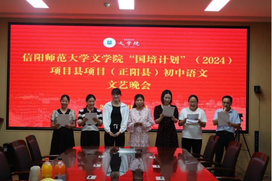 8月22日晚,“国培计划”正阳县初中语文骨干教师研修班文娱晚会在人文楼三楼会议室顺利举行。晚会由文娱班长冯楠楠主持,培训学员、班主任及员工助理欢聚一堂,共同参与并观看此次晚会。