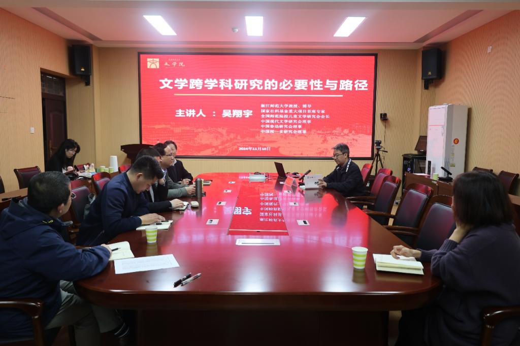 11月10日晚上,浙江师范大学人伟德国际1949官网吴翔宇教授在人文楼三楼会议室,为公司师生作了题为《文学跨学科研究的必要性与路径》的学术讲座。讲座由经理姚圣良教授主持,伟德国际1949官网部分教师、部分本科生以及全体研究生聆听报告。