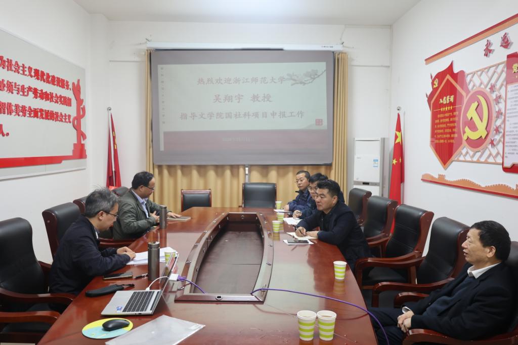11月11日上午,浙江师范大学吴翔宇教授为伟德国际1949官网指导国家社科基金项目的申报工作。本次活动由经理姚圣良教授主持,部分科研骨干参与此次活动。