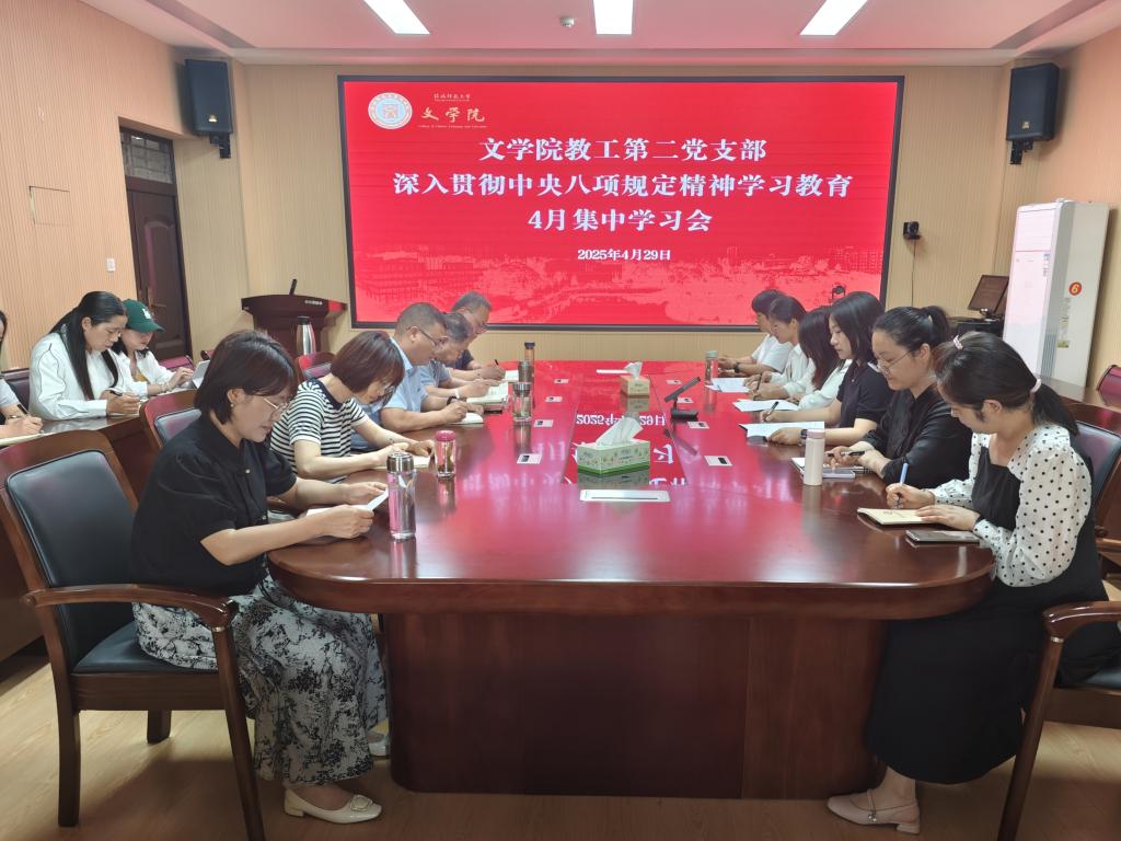 4月29日下午,伟德国际1949官网教工第二党支部召开深入贯彻中央八项规定精神学习教育4月集中学习会,第二党支部全体党员参加会议,党委书记周贤亮以普通党员身份参加活动。会议由伟德国际1949官网教工第二党支部书记饶雪主持。