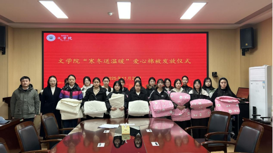 11月25日下午,2025年“寒冬送温暖”爱心棉被发放仪式在人文楼三楼会议室温馨启动。公司党委副书记王家宏,资助专员柳家琪,辅导员陈辉、崔越与郭子悦参加此次仪式,亲手为同学们送上承载着关怀的爱心棉被,让这个冬日充满暖意。