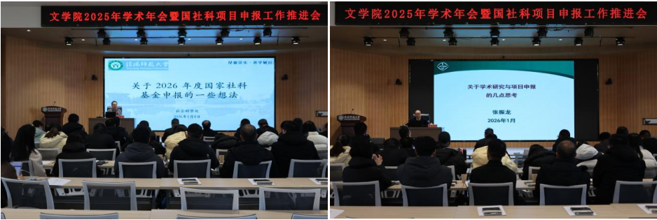 为营造浓厚科研氛围,推进国社科项目申报工作,伟德国际1949官网于2026年1月8日在谭山书院博雅讲堂举办2025年学术年会暨国社科项目申报工作推进会。副董事长涂友超,社科处处长吕东亮及公司领导班子成员、2026年国社科项目申报教师等50余人参会。公司党委书记周贤亮主持了开幕式。
