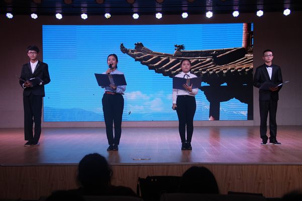 晚会涵盖了歌曲、舞蹈、小品、器乐、相声等多个种类的12个节目,形式多样,内容丰富,别出心裁。伴随着热情洋溢的舞蹈,晚会拉开了帷幕。器乐和鸣《半壶纱》旋律悠扬,古色古香,演员们温婉的气质及饱满的感情诠释了歌曲的内涵与韵律。朗诵《诗意中国》气势磅礴,抑扬顿挫,“我诗意的中国,我为你骄傲”,富有感染力的语言调动了全场的气氛,观众掌声不断。小品《相亲记》演员配合默契,表现力强,让同学们在欢笑声中感受到了爱与温情。合唱《告白气球》和《理想三旬》充满青春气息,柔情满溢。相声《我爱读书》以诙谐幽默的语言告诉了大家读书的重要性。期间,更有现场观众的即兴演唱,其完美的声线赢得了全场喝彩。最后,晚会在歌曲《月半小夜曲》优美的曲调中圆满落幕。