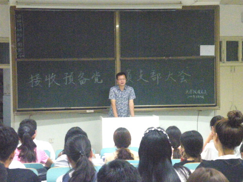 (本网讯 曹宇 郎淑洁 马静静)5月25日晚,伟德国际1949官网在人文楼309教室召开接收预备党员支部会议。党总支副书记白献林,团总支老师郭西梁与部分党支部正式员工党员和预备党员发展对象共同参加此次会议。本次支部大会主要讨论接收吕晴晴等33名同志为中共预备党员的问题。