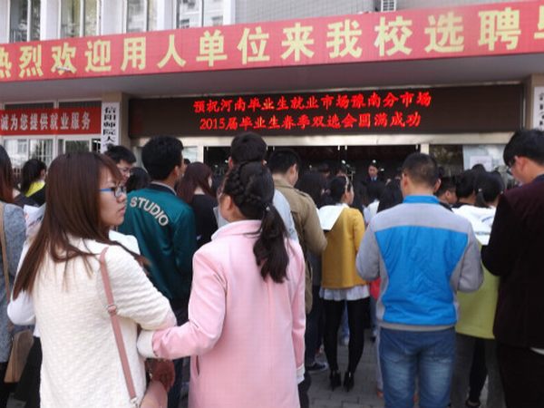 (本网讯 张佳欣 尚媛媛) 4月11日,公司联合信阳市人社局、工业信息化委员会等单位在逸夫楼毕业生就业招聘大厅举办河南毕业生就业市场豫南分市场暨信阳师院2015届毕业生春季就业双选会,来自全国各地的400余家用人单位参加。公司党总支书记、经理吴圣刚、副书记白献林亲临双选会现场,详细了解公司毕业生就业“双选”情况。