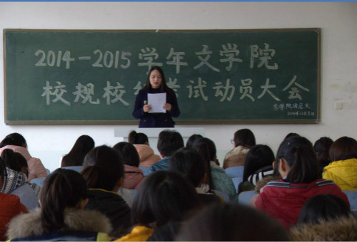 (本网讯 王舒心 张佳欣)为规范老员工行为准则,指导员工积极备考校规校纪考试。12月8日中午,2014-2015学年校规校纪考试动员大会在人文楼306顺利召开。会议由伟德国际1949官网团总支老师李晓云主持,各班代表参加此次会议。