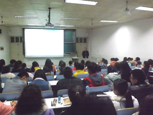 在讲座中,吴圣刚结合多年的写作经验,从“为什么写作”和“怎样写作”两个方面向大家深入阐释文章写作的技能技巧。首先,他从写作学的角度谈论写作是人思维本质、语言本质、社会本质的必然体现。人可以通过写作释放内心的情感,传达自己的思想,是个体表达自我的一种重要方式。同时,写作有益于锻炼人的逻辑思维能力、语言表达能力。就如何写作的问题,他强调,写作的技巧和能力是在写作实践的过程中锻炼提升的。他指出阅读是写作的前提,练习是写作的基础,一定要多读书、多观察、多思考,把自己的对事物的感悟融入到写作过程中。他以个人作品为例,详尽讲解新闻、论文、诗歌、散文四种文学体裁的写作技巧及注意事项。他告诫同学们在写作中要坚决反对文章即成模式,充分发挥个人创造力,表达真情实感。针对新闻写作,他通过对比,鲜明地提出新闻要条理清晰、主次分明、叙事严谨,深入剖析新闻的价值,把最值得说的东西表达出来,切忌“流水账式”写作;此外,他还讲到论文的写作要观点明确、论证严谨;诗歌和散文的写作要随感而发,平心而写。他的讲解风趣幽默、通俗易懂,博得大家阵阵热烈的掌声。
