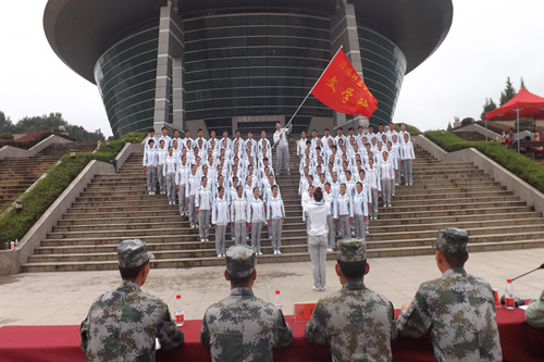 (本网讯 余怡楠 李宝丽)9月19日下午,公司2014级新生军训歌咏比赛在校体育馆前隆重举行。经过多日排练,来自各院系的19支参赛队伍以整齐的队列、飒爽的军姿和嘹亮的歌声接受评委组及师生的检阅。