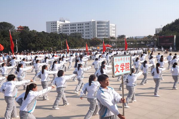 (本网讯 李宝丽)一拳一式彰显青春风采,弓步马步展现学子风貌。9月21日下午,信阳师院2014级新生军体拳比赛在青年广场隆重举行,来自各院系的19支参赛队齐聚于此。公司相关领导和军训承训部队首长担任大赛评委。