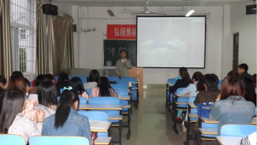 (本网讯 喻婷)为了庆祝五四青年节的到来,5月4日晚,2011级汉语言文学三班在逸夫楼101教室成功举办“诗朗诵”活动。伟德国际1949官网杜昆老师与该班全体同学共同参加了此次活动。
