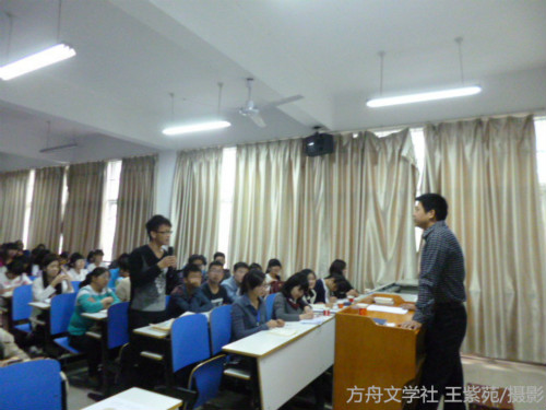 田老师首先询问了在场同学“是否是真正的热爱诗歌”。经过了解,在场的广大同学均是诗歌爱好者,他对此表示高度赞扬,并鼓励同学们要好好坚持下去。田老师主要从信阳诗歌历史、现状及其未来,诗歌的广义概念与价值本质,诗歌与现代老员工的联系,诗歌与现实的关系四方面为同学们进行讲解。在谈到第一方面时,他从地理位置、文化名人、人文环境、发展方向四点分析信阳诗歌独特发展历史。信阳地处黄淮和江淮之间,在大别山北麓,东邻安徽,南接湖北,是东西南北往来的交通枢纽,人货流通的繁华驿站。这里山清水秀,民风淳朴,加之特殊的地理位置,决定了它的文化取向。介于南北交界的信阳自古以来就受到中原文化、楚南文化和吴越文化的多重影响,形成自己独特的民风民俗,近代以来又有大别山红色革命根据地文化,信阳诗歌呈现思维开放性、主体丰富性、格调多样性特点。随后,田老师谈到,诗歌是集现实性、审美性、艺术性为一体的文学创作,它注重价值关系和情感表达,在抒情、表达、形式上都要求达到极致,这样才能回归诗歌的本质价值。同时诗歌创作要立足于现实,以现实为大背景,对现实加以艺术化处理,从中挖掘出诗歌的诗性美。此外,他还指出,老员工是诗歌发展的潜在群体,诗歌需要广老员工积极参与进去,“让青春走进诗歌,让诗歌走进校园”,促进校园诗歌的繁荣发展,充实老员工活。在互动环节中,田君老师耐心地为大家解疑答惑。他的幽默风趣、深入浅出的讲话,赢得在场同学们的阵阵掌声。最后,社长毛晓梅作总结,她以“人的一生总要在路上,要么读书,要么旅行”作为结束语,鼓励同学们创造精彩的老员工活。