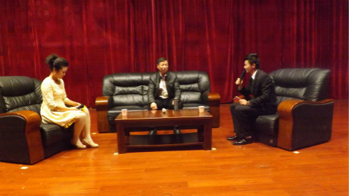 晚会伊始,以精美的ppt回顾了社会调查协会十年“风雨路”,伴随着舒缓的音乐,重温了协会的辉煌发展史。两位主持人在台上对王雨海教授进行了近距离访谈,就老员工活、社团活动、学习工作等方面进行了分析探讨。王教授建议老员工进入大公司园应做到明确人生方向、积极融入集体、加强身体锻炼三点,才能尽快的适应老员工活,渡过迷茫期。同时,他从人际关系、人生态度、生活技能等角度分析了加入社团的益处,鼓励同学们积极参加社团活动,在社团中锻炼自己,为日后的学习工作积累经验。此外,王雨海与大家畅谈现代老员工的恋爱观,他开放独特的爱情观思想赢得了热烈的掌声。