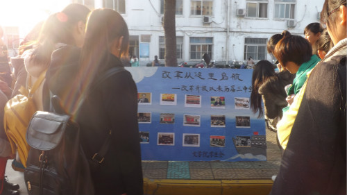 该活动分前期搜集、图片评选、图片展览三个阶段。据了解,此次图片展图片从2013级各班征集,图片内容为改革开放35年来历届中全会上有重要意义、令人感怀的精彩瞬间。经过评选,20余张最具代表性、富有划时代意义的图片在展板上展出。图片内容涉及历届领导的重要讲话、会议通过的决策文件等。每幅图片下面都配以文字说明,图文搭配,形式新颖,吸引了众多学子驻足观看。